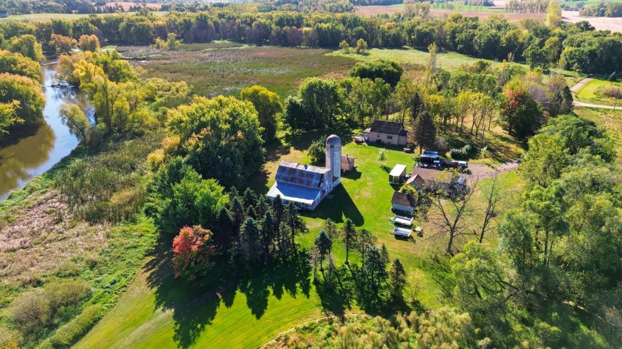 Rare sportsman's paradise complete with ample miles for ATVing. Nearly 80 acres with over 1500 ft of the North Fork of the Crow River. Ideal for hunting, fishing, & outdoor recreations. Approx. 14 acres on the home side & 66 acres across the river. Access is via a minimum maintenance road. 1 1/2 story home with 4 bedrooms, 2 bath, large enclosed front porch & a back porch leading to a deck. Super private setting with crushed asphalt driveway, oversized detached garage, granary, outdoor wood boiler building, large barn and a storage shed. A true outdoor retreat complete with apple, walnut, and maple trees. For the outdoor enthusiast, enjoy the shooting range and the property being adjacent to USA Fish and Wildlife Service for an additional opportunity to use 120+ acres. New furnace in 2025 and 200 amp service. Shown by appointment only.